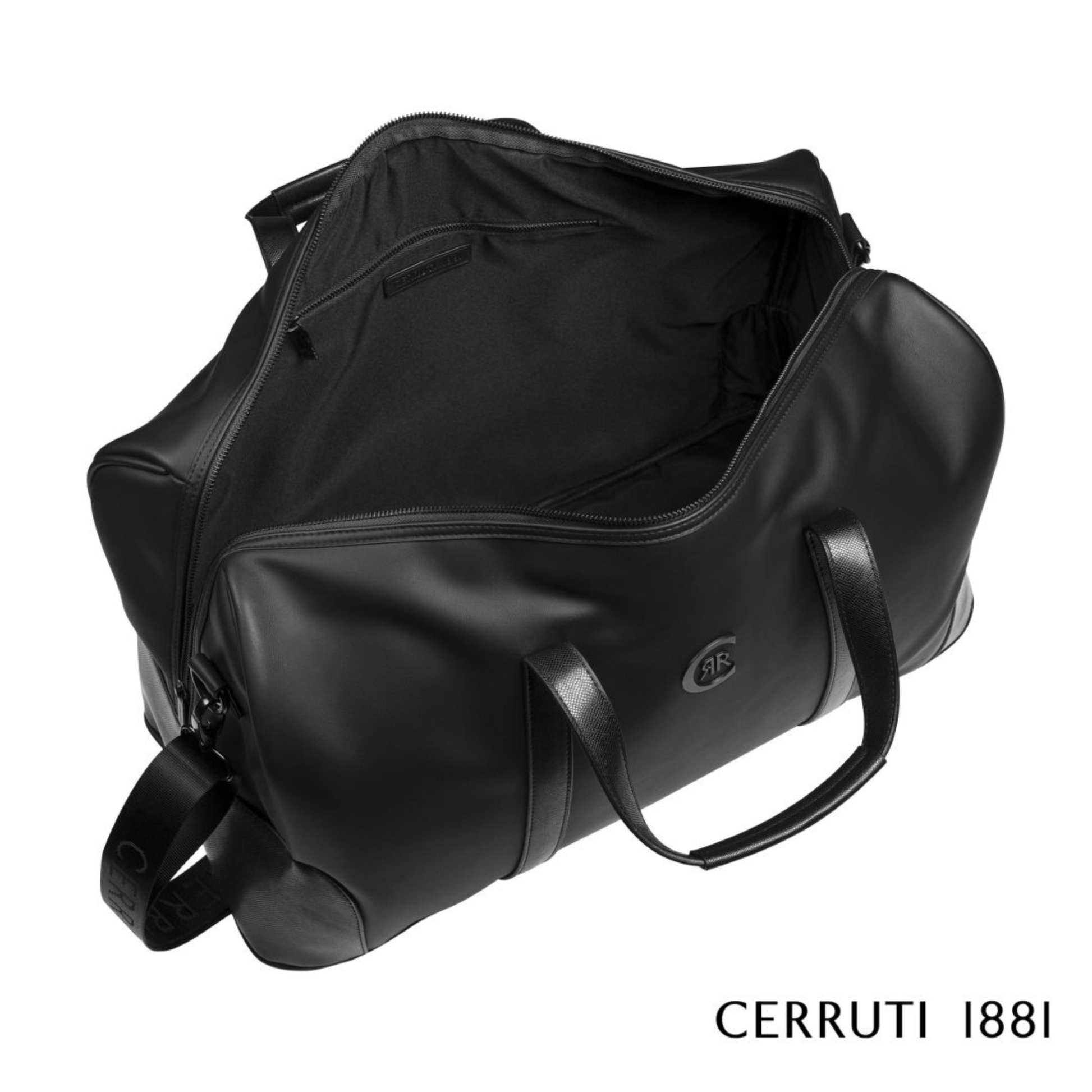 Impeccably crafted in an exquisite soft matte black vegan leather blended with a black textured leather and adorned by a distinctive matte black Cerruti 1881 metal plate, the Forbes week-end bag is resolutely masculine and modern.