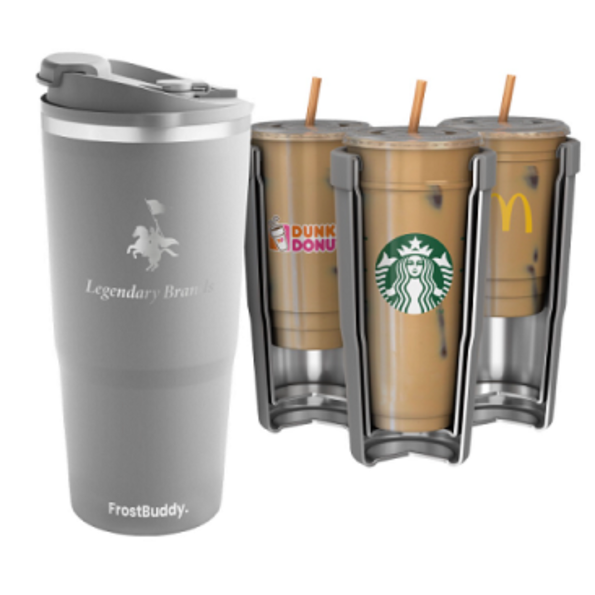 The world’s first universal coffee (or beverage) insulator! Designed to insulate nearly all iced / hot coffee cup sizes (from Starbucks, Dunkin Donuts, McDonalds, etc.) Keeps contents cold for 12+ hours and hot for 6 hours. Cup holder friendly and Non-slip Silicone bottom. Includes 2 accessories: a to-go beverage collar and a 100% leak-proof lid for normal tumbler function.